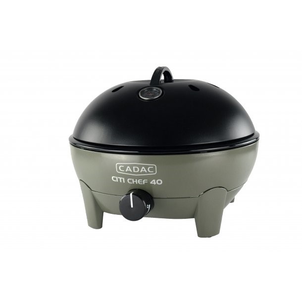Barbecue de table, ultra compact livré avec 2 surfaces de cuisson interchangeables : support de casserole et grille barbecue. Déflecteur de flamme intégré pour une répartition de la chaleur rapide et uniforme et revêtement antiadhésif GreenGrill en céramique. Le Citi Chef dispose d'un puissant brûleur de 2.7 kW qui, conjugué au couvercle avec thermomètre intégré, permet la cuisson de type four. Le couvercle peut également être accroché sur le côté pour servir de pare-vent. Allumage facile grâce au piezo automatique. Sac de transport fourni.