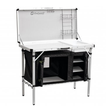 Meuble multi-fonctions intégrant un double espace de stockage, un plan de travail, une bassine et des rangements intégrés au couvercle. Pieds ajustables.• Dim. : L 100 x l 50 x H 82 cm• 14,3 kg