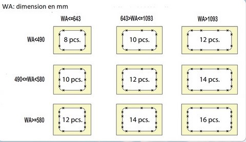Pinces de fixation pour baie Polyvision. Vous devez choisir le nombre suivant les dimensions de fenêtre.