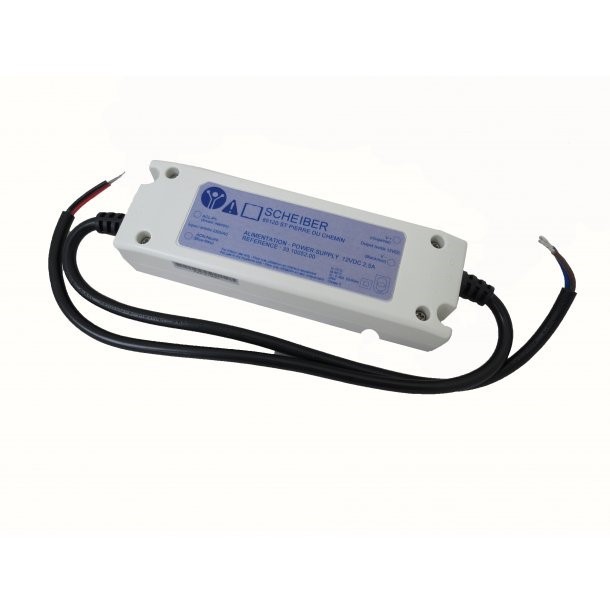 Marque : ScheiberTAlimentation 230VDim. hors tout l (mm) 47Dim. hors tout H (mm) 30Tension(s) de sortie (V) 12Puissance (W) 30